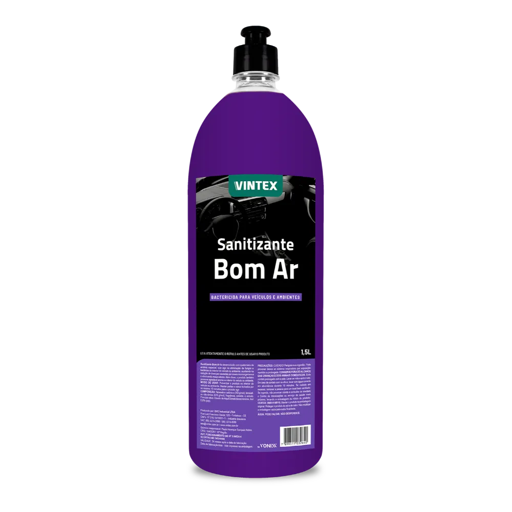 Sanitizante Bom Ar foi desenvolvido com quaternário de amônio especial, que age na eliminação de fungos e bactérias do interior do veículo ou ambiente, auxiliando na redução de doenças causadas por esses microorganismos e eliminando maus odores. Além disso, o produto também promove agradável aroma no interior do veículo ou ambiente.