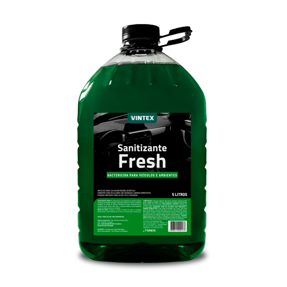 Sanitizante Fresh foi desenvolvido com quternário de amônio especial, que age na eliminação de fungos e bactérias do interior do veículo ou ambiente, auxiliando na redução de doenças causadas por esses microorganismos e eliminando maus odores. Além disso, o produto também promove agradável aroma no interior do veículo ou ambiente.
